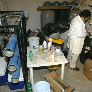 Además, 26 tambos metálicos con capacidad de 200 litros cada uno con una sustancia cristalina desconocida; una tina con una sustancia cristalina desconocida; una olla metálica con una sustancia cristalina desconocida.