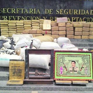 A los inculpados también les aseguraron cuatro armas de fuego, dos vehículos e implementos para empaquetar la droga, así como un cuadro con la imagen de Jesús Malverde, el llamado “Santo de los narcos”.