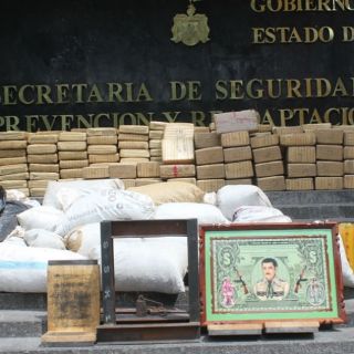 A un costado de ambos vehículos, los uniformados aseguraron 391 paquetes de droga envueltos en cinta canela; 17 costales con mariguana en greña; tres bolsas negras con residuos de mariguana; tres costales de semilla de mariguana, con un peso de 62 kilos, así como también un cuadro enmarcado de Jesús Malverde.