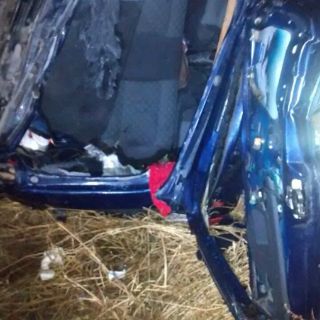 Al llegar al punto encontraron que se había volcado un vehículo Volkswagen Pointer azul con placas de Durango. En el auto viajaban cinco personas de las cuales dos habían fallecido, las dos menores de edad de cinco y siete años, respectivamente.
