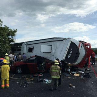 La alerta fue recibida poco después de las 16:00 horas. Personal de la dependencia acudió al punto, poco antes de la caseta de cobro a la altura de la población de El Vado, donde encontró un camión de la empresa Fierros Express, placas de circulación 864-RN-4, que volcó sobre su costado izquierdo para quedar arriba de la parte trasera de un automóvil sedán.