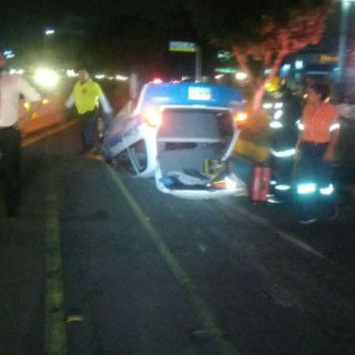 Automóvil vuelca en avenida Lázaro Cárdenas