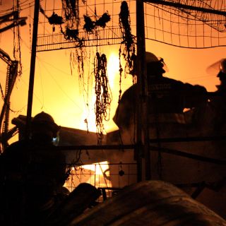 GUADALAJARA, JALISCO (21/NOV/2010).- El incendio que se suscitó la madrugada de hoy en el tianguis navideño ubicado en el cruce de la avenida Alcalde y la calle San Felipe no dejó ningún lesionado, sin embargo cerca de 220 puestos resultaron con pérdidas totales.