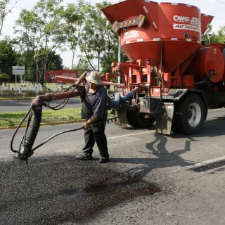 Agregó que la dependencia cuenta con 12 cuadrillas de personal y dos bacheadoras. Además, refirió que se utilizan hasta 10 toneladas diarias de material asfáltico.