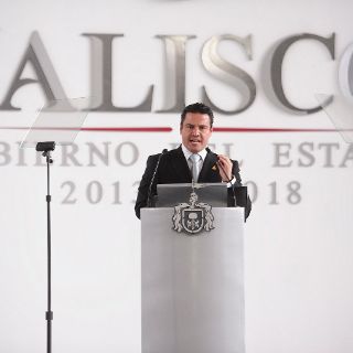 de Jalisco. El mandatario estatal emitió su primer mensaje como titular del Poder Ejecutivo, refirió tres grandes temas que habrá de poner especial atención en su gobierno: abasto de agua, movilidad y seguridad, se refirió además a la necesidad de mejorar la relación entre los poderes de Jalisco.