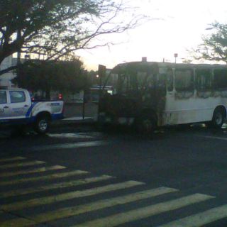 Fue alrededor de las 7:00 horas de este martes, cuando bomberos municipales acudieron al cruce de las avenidas Patria y Ávila Camacho para apagar el fuego que consumía el camión urbano.