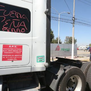 Camiones de carga bloquean ingreso de Pemex en Zapopan