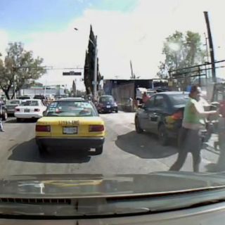 En la grabación se puede ver a dos mujeres bajando de la unidad acompañadas de dos menores de edad en pleno alto, cuando detrás de ellas bajó el chofer del taxi.