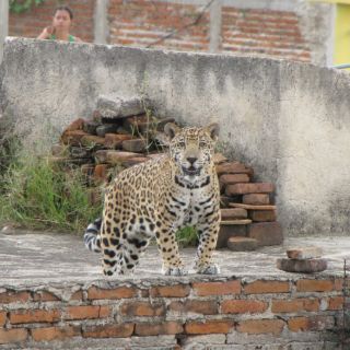El jaguar mientras se paseaba de una azotea a otra, se echaba y miraba curioso a los mamíferos que estaban en los patios de las casas.