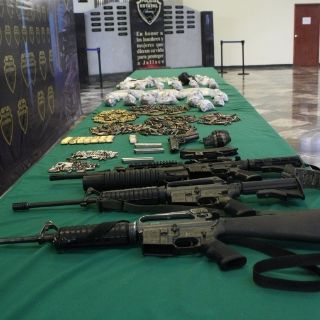Entre lo asegurado también fue hallada otra camioneta de la marca Chevrolet GMC Sierra, más dos rifles de alto poder, calibre .223, de los conocidos como tipo AR-15. También un arma de fuego larga, calibre 5.56, con un aditamento especial para lanzar granadas del calibre .40, así como una pistola tipo escuadra, calibre .10 milímetros, dos granadas fragmentación, cargadores para diversas armas, y mil 035 cartuchos útiles para los calibres .223, 7.62, .38 súper, .45 y 9 milímetros.