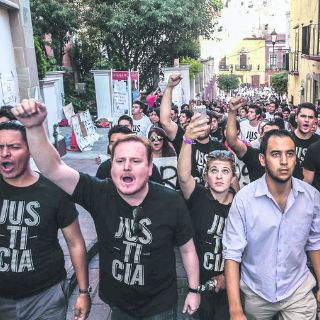 GUADALAJARA, JALISCO (24/OCT/2014).- Alrededor de las cinco de la tarde de ayer, un grupo de manifestantes procedentes de Guadalajara y de Lagos de Moreno llegó a la ciudad de Guanajuato para protestar por la muerte de Ricardo de Jesús Esparza Villegas, estudiante del Centro Universitario de los Lagos (CULagos) que el pasado 19 de octubre fue encontrado sin vida al interior de una vivienda.