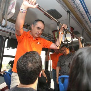 El día de hoy por la mañana el candidato utilizó el servicio del Macrobús y platicó con sus usuarios.