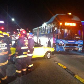 Al llegar al sitio, los bomberos encontraron con lesiones a dos personas que viajaban en el taxi del sitio 34 y a dos pasajeros de la unidad TM-035 del Macrobús.