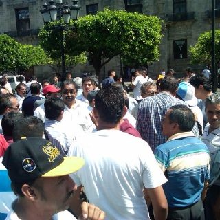 GUADALAJARA, JALISCO (15/OCT/2012).- Con la exigencia de mayor seguridad y la pronta captura de los asesinos de cuatro choferes y un despachador del transporte público, un centenar de choferes de la Línea TUR, Macrobús y diversas rutas de la Alianza de Camioneros se manifestaron este mediodía en Plaza de Armas, frente a Palacio de Gobierno.