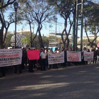 GUADALAJARA, JALISCO (09/FEB/2017).- Empresarios y choferes del transporte público se manifestaron esta mañana frente al Congreso del Estado para exigir reformas en la Ley de Movilidad y Transporte.