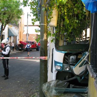GUADALAJARA, JALISCO (19/OCT/2010).- El choque protagonizado por un camión del transporte público y una camioneta en la Zona Centro de Guadalajara dejó saldo de una veintena de lesionados, entre ellos el chofer de la unidad, quien fue reportado como grave.
