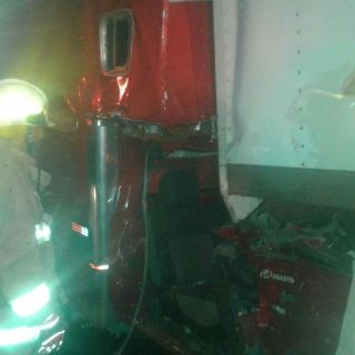Una camioneta de caja impacta contra un tráiler durante la noche del domingo
