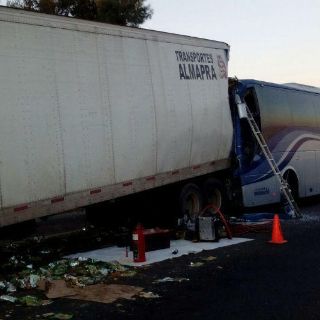 El percance fue protagonizado por un tráiler que transportaba frituras y un autobús de pasajeros de la línea TAP que cubría la ruta de Culiacán - La Piedad.