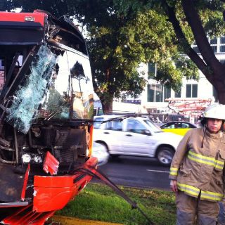 Fueron dos vehículos los que participaron, un camión de traslado de personal de una empresa de botanas y uno de recolección de residuos privado. El camión, número económico 553, terminó impactado en un árbol.