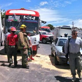 GUADALAJARA, JALISCO (17/ABR/2014).- El choque entre dos unidades del transporte público de la ruta 275-B dejaron como saldo 25 heridos, de estos 15 son adultos y 10 menores de edad, esto ocurrió en la carretera a Saltillo y Agua Fría.