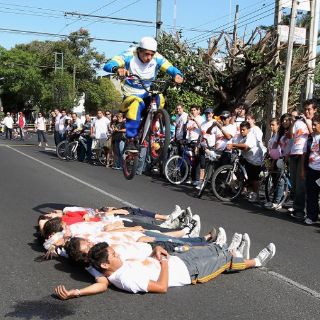 Carlos Ramos fue el guía que llevó a este pelotón Panamericano por la ruta que tuvo como puntos centrales para paradas técnicas y porras de Guadalajara 2011 en la Universidad del Valle de Atemajac (en la colonia Prados Tepeyac), Puente Atirantado y Los Arcos de Guadalajara, punto de encuentro con el grupo que arribó del destino de Revolución, en donde se encontraron para recordar que Guadalajara está lista y en sus marcas para los Juegos Panamericanos.