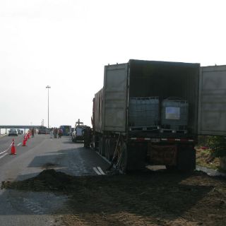 Supuestamente el chofer del carguero, el cual no proporcionó su nombre, mencionó que otro tráiler lo alcanzó a golpear por lo que uno de los contenedores que trae en su interior se rompió y originó el derrame de la sustancia.