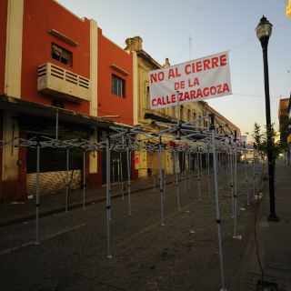Cierran calle Zaragoza; locatarios hacen plantón