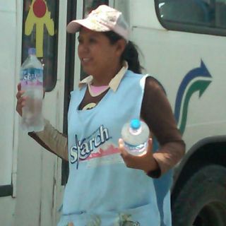 Esta joven trabaja cinco horas diarias –de 10:00 a 15:00 horas- como vendedora de agua y refrescos en el crucero de González Gallo y la Calzada Independencia. Camina entre los coches con las botellas de agua en el tiempo que dura la luz roja del semáforo y a veces si tiene suerte regresa al pequeño puesto, colocado sobre el camellón, con las manos vacías.