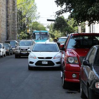 GUADALAJARA, JALISCO (18/ENE/2013).- El flujo vehicular sobrepasa la capacidad de las vialidades del Centro de Guadalajara y este caos lo intensifican los autos estacionados en sitios prohibidos, coinciden ciudadanos consultados por este medio.
