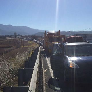 GUADALAJARA, JALISCO (13/ABR/2017).- Fuerte carga vehicular se registra en la carretera a Puerto Vallarta, debido a un choque ocurrido en el puente ferrocarril de la autopista Chapalilla-Compostela, que mantiene prácticamente detenido el tráfico en la zona.