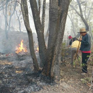 La Comisión Nacional Forestal (Conafor) reportó que hay 80 combatientes en el lugar, ocupados en dos diferentes frentes de trabajo.
