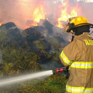 El fuego se originó en un pastizal del área, sin embargo, este se propagó rápidamente hasta llegar a la bodega donde fueron consumidas cerca de 20 toneladas de alfalfa, refirieron las autoridades municipales.
