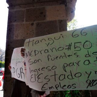 GUADALAJARA, JALISCO (25/ENE/2011).- Por la mañana de ayer se manifestaron integrantes del Frente de Resistencia de Comerciantes del Estado de Jalisco para exigir que se les permitan vender libremente sin ser agredidos.