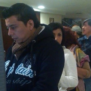 En estos momentos, una larga fila de trabajadores se encuentran en espera de alcanzar a sacar dinero del cajero automático instalado al interior del edificio legislativo.