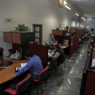 La parte alta del Ayuntamiento de Guadalajara se divide en las oficinas de los regidores y la sala de cabildo. Y es precisamente en esa sala donde se concentran las oficinas de los asesores y las secretarias. Sin embargo, el personal es poco y los escritorios lucen despejados en la mayoría de estos sitios.