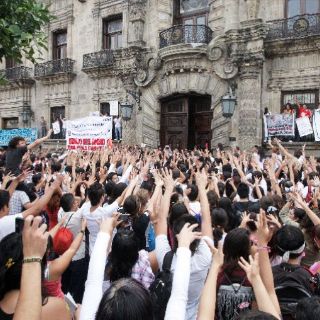 Durante una hora, los alumnos se quedaron a las afueras del Palacio de Gobierno, gritaron consignas en contra de mandatario estatal, Emilio González Márquez, quien se encuentra de gira en Puerto Vallarta para revisar la situación del puente que colapsó y que dejó incomunicada a la bahía.