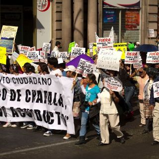 GUADALAJARA, JALISCO (25/ENE/2012).- Poco después de las 11:30 horas, una comitiva de aproximadamente dos mil personas arribó a las instalaciones del Sistema Intermunicipal de Agua Potable y Alcantarillado (SIAPA), con el propósito de hacer escuchar su voz de oposición a la segunda línea del acueducto Guadalajara-Chapala que la paramunicipal contempla como uno de los proyectos prioritarios para el abastecimiento de agua a la metrópoli.