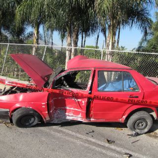 Fue una camioneta Honda CRV placas JKT-4165 la que colisionó al Jetta de tal modo que lo proyectó en contra de un poste de cámaras de vigilancia estatales y de ahí el auto rebotó y se dio la vuelta. El conductor, de entre 30 y 35 años de edad, murió casi al instante al estallarle el cráneo. Su cuerpo quedó prensado en el vehículo donde el espacio interior (entre el choque y el golpe en el poste) quedó reducido a unos 60 centímetros.