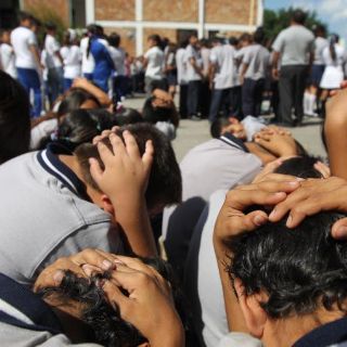 Han pasado 70 segundos desde que sonó la campana por segunda ocasión, el segundo timbre, el del simulacro oficial; y los niños se están derritiendo en el patio. Los últimos ya no corren, llegan porque tienen que llegar. En el patio los niños tienen sus caras con sudor y uno que otro que empieza a reclamar dolores de cabeza, el simulacro parece ser incómodo. Las maestras piden con la cara pero no con las palabras que esto se acabe porque no quieren sustos.