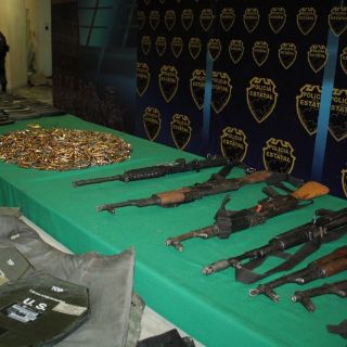 Al realizarles una revisión precautoria se les aseguró dos armas largas, 53 cartuchos, ocho pantalones camufleados, 19 camisolas y cuatro camisetas.