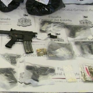 • Un Nissan Tsuru gris plata, con placas JLH3147, equipado con dos compartimentos ocultos en los que fueron halladas tres armas: una calibre .22 y dos armas calibre .38 Súper, además de pasamontañas.