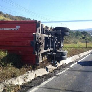 En redes sociales los usuarios difundieron fotografías de la caja de tráiler recostada durante su costado derecho y con las llantas al aire.