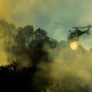 El helicóptero realizó varias descargas de agua en la zona afectada hasta que se logró controlar y extinguir el fuego.