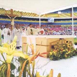 GUADALAJARA, JALISCO (18/JUL(2011).- Durante tres días el Estado Jalisco se convirtió en un espacio exclusivo para la oración y reflexión. Un promedio de 30 mil jóvenes provenientes de toda la República Mexicana participaron en el XXVI Encuentro Nacional de Jóvenes en el Espíritu Santo (ENJES), que ayer concluyó con una emotiva y colorida misa que encabezó el nuncio apostólico en México, Christopher Pierre.