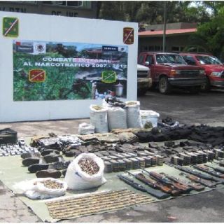 El aseguramiento en ambos municipios es de aproximadamente 13 armas largas, casi 40 mil cartuchos y una granada antitanque, mariguana y semilla del mismo enervante, así como también vehículos blindados.