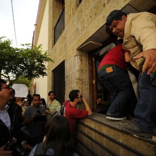 GUADALAJARA, JALISCO (14/DIC/2013).- Durante el altercado que tuvo lugar esta mañana en el ingreso al