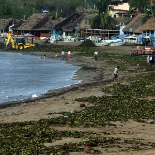 Principalmente la de Melaque, en la que se encontraron esta mañana abundantes desechos orgánicos vegetales (lirio) a consecuencia de la apertura de una sangría de la laguna de San Patricio, realizado para su drenaje preventivo el pasado jueves.