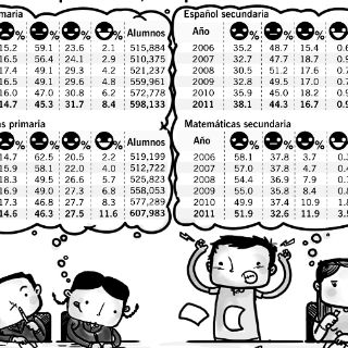 En las secundarias el panorama es similar. Para las escuelas particulares en la materia de español hay 35.8% de alumnos con calificaciones de buenas a excelentes, mientras que en las secundarias generales el porcentaje de alumnos con calificaciones en el mismo rango es de poco más de 14 por ciento.