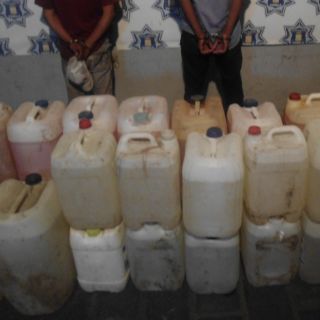 GUADALAJARA, JALISCO (20/SEP/2014).- Policías de Tonalá detuvieron a dos sujetos mientras trasladaban combustible presuntamente robado la tarde de este viernes. Los sujetos cargaban con cerca de 500 litros de