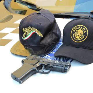 Posteriormente, los policías tapatíos les marcaron el alto, para después realizar una revisión tras la cual se les encontró dos gorras con el Escudo Nacional y a uno de ellos se le aseguró un arma de utilería, similar a una calibre 380.